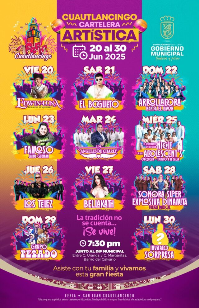 Cuautlancingo ya está listo para brillar con una explosiva oferta musical durante su esperada feria 2025, que se celebrará del 20 al 30 de junio, y promete entretenimiento para toda la familia con una cartelera repleta de talento nacional e internacional.