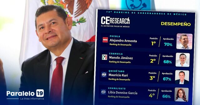Alejandro Armenta encabeza ranking nacional de gobernadores con 70% de aprobación