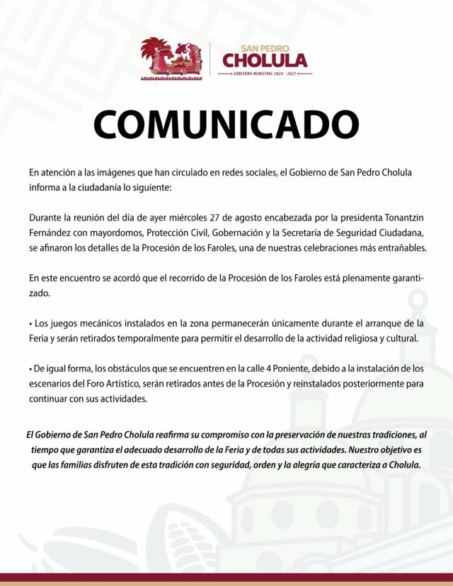 En atención a las imágenes que han circulado en redes sociales, el Gobierno de San Pedro Cholula informa a la ciudadanía lo siguiente: