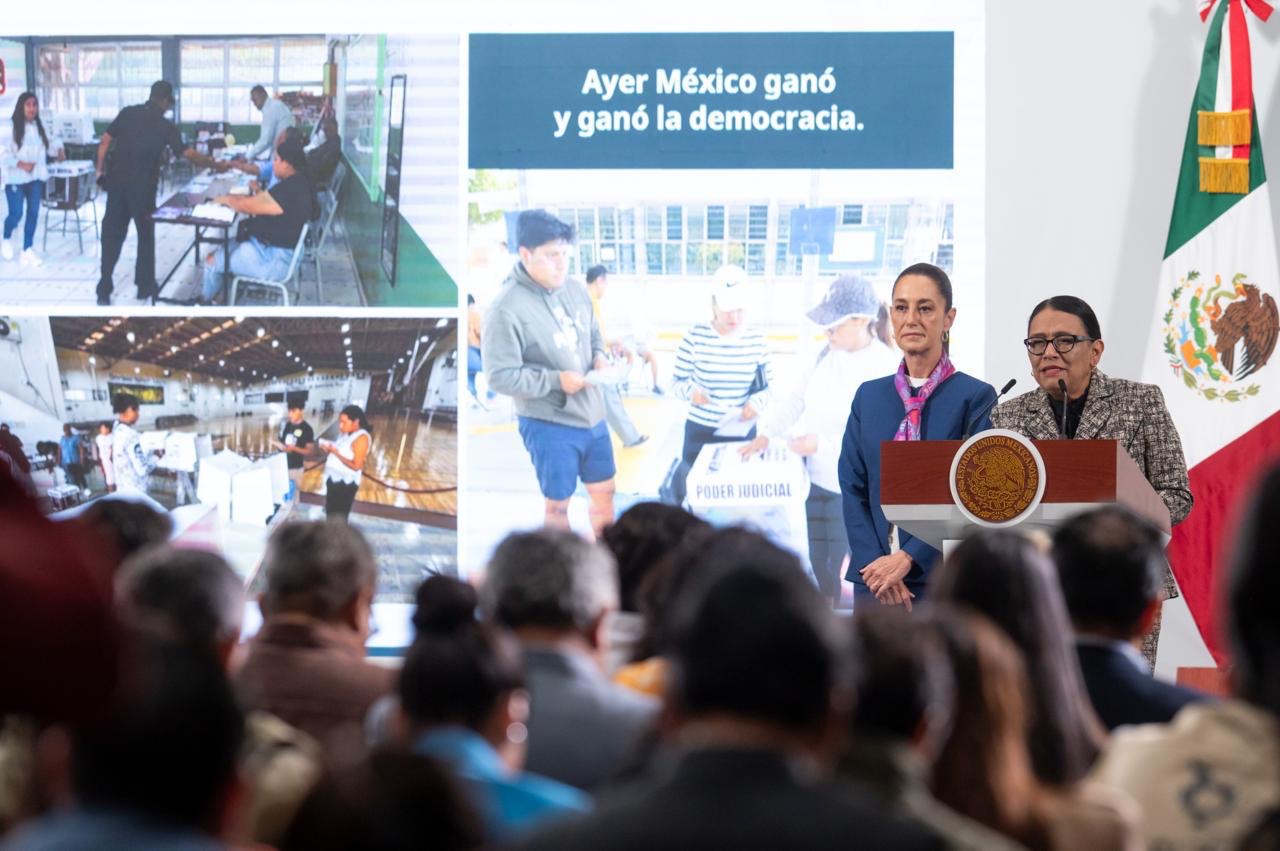 La Presidenta de México Claudia Sheinbaum Pardo destacó que la primera elección democrática del Poder Judicial fue todo un éxito, ya que salieron a votar libremente cerca de 13 millones de mexicanas y mexicanos, más del doble de los que participaron en la consulta para el juicio a expresidentes, que se realizó en agosto del 2021, y más de los votos que recibió cada uno de los partidos de la oposición en la elección del 2 de junio de 2024.