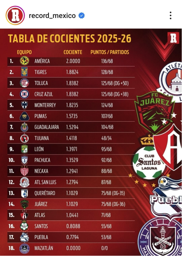 Mientras todo eso sucede, el periódico Récord publicóla tabla de cocientes para el próximo torneo, donde la franja a lo que más aspira es a superar al Santos de Torreón para no pagar 80 millones, sino nuevamente 47, por lo que como le decía líneas arriba, la cosa esta prieta.