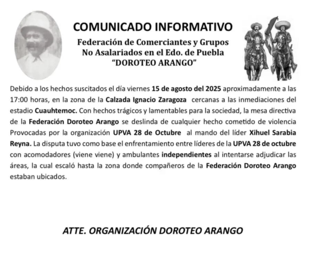 Mire que el fin de semana pasado fue triste ver las imágenes de una balacera afuera del Estadio Cuauhtémoc, en donde incluso se ve a un sujeto disparando a diestra y siniestra en plena avenida, sin importar si había civiles y aficionados en la calle, el resultado de este enfrentamiento entre organizaciones que se disputan el control de los estacionamientos de las zonas aledañas al estadio resultó en una mujer muerta por un disparo de arma de fuego y un lesionado, mismo que requirió intervención quirúrgica, también alcanzado por las balas de este energúmeno, que poco le importó quién saliera lesionado, con tal de llevarse unos cuantos pesos.
