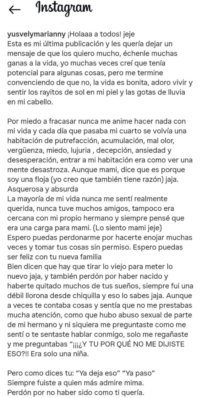 De acuerdo con los primeros reportes policiales, la joven habría publicado un mensaje de despedida en redes sociales momentos antes del suceso, en el que expresó malestar emocional y señaló haber sido víctima de abuso sexual. Minutos después, testigos observaron cuando cayó desde el puente, sin que se lograra evitar el hecho.