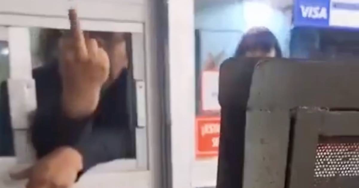 En el video se observa cómo una de las mujeres comienza a patear fuertemente la puerta del establecimiento, mientras la otra le grita de forma agresiva al empleado e incluso le hace señas obscenas, en un intento evidente por intimidarlo y provocar una reacción. A pesar de la presión y las amenazas, el joven trabajador se mantuvo firme en su negativa, resguardando su integridad y la normativa comercial.